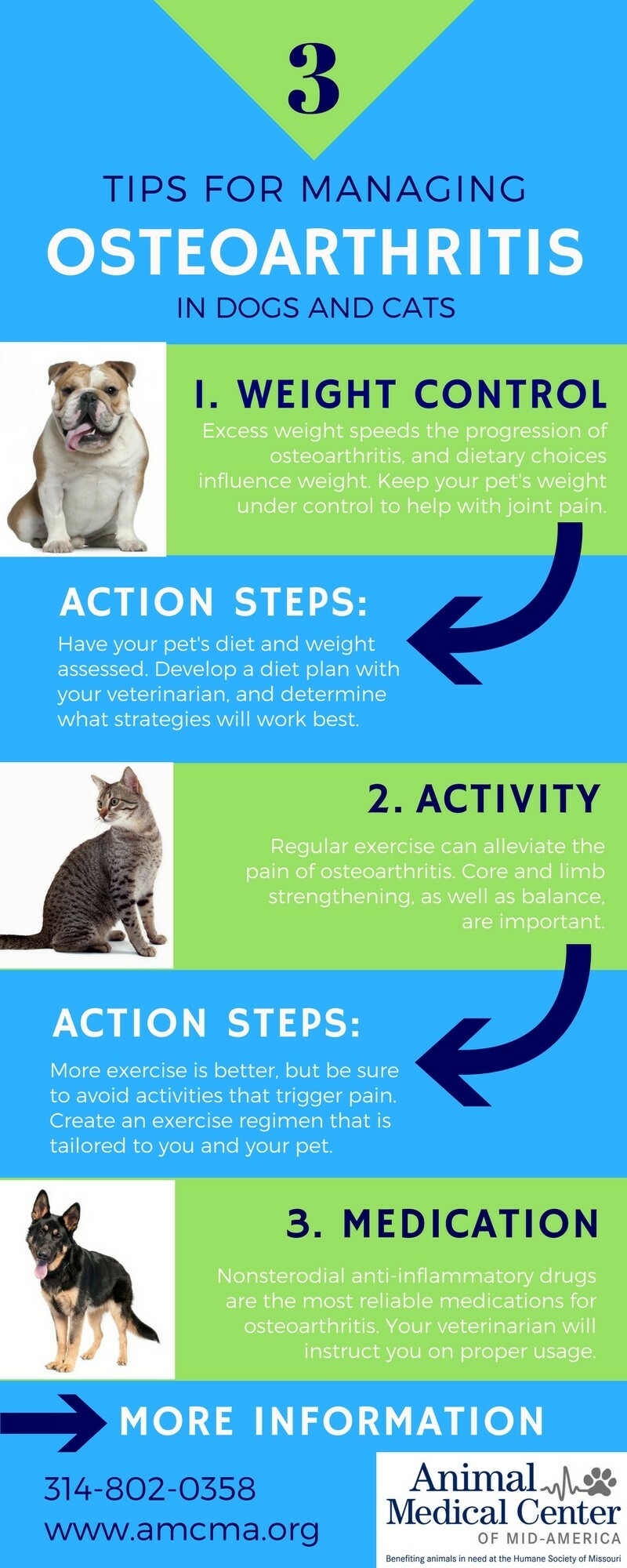 The Animal Medical Center of Mid-America has veterinarians at three locations that can answer questions about your pet’s health. Call 314-951-1534 or click here to request an appointment online.