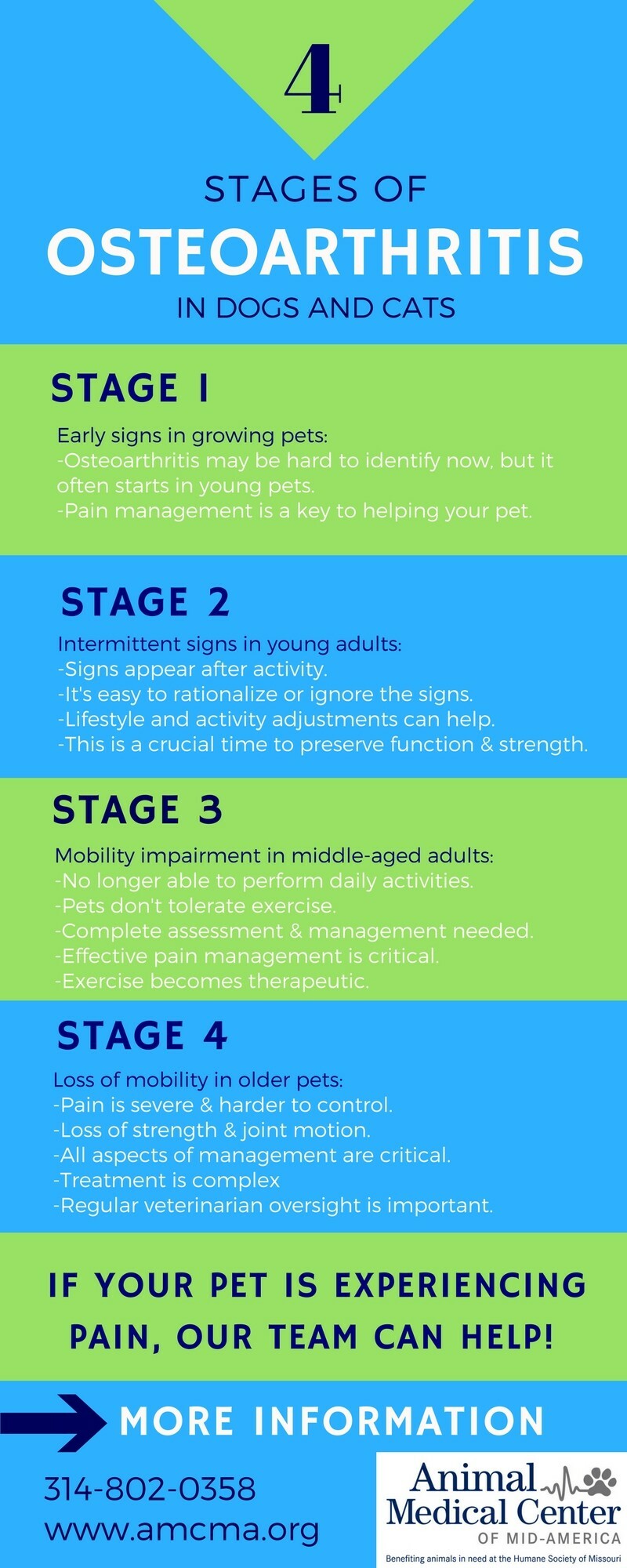 September is Animal Pain Awareness Month, but it's important to recognize osteoarthritis in pets year-round. This degenerative joint disease is painful and can decrease your pet's quality of life. Here are a few helpful infographics: