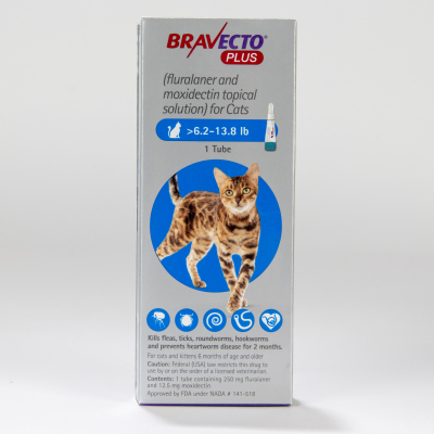 Feline Bravecto Plus is a topical solution that provides protection to your cat against fleas, ticks, heartworms and intestinal parasites for 2 months.