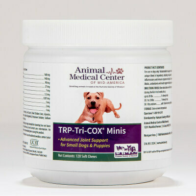 TRP-Tri-COX® For dogs who are at risk of breed specific early arthritis conditions, such as hip or elbow dysplasia or for dogs who experience occasional joint stiffness due to normal exercise or activity, these chews are a moist and tasty snack for dogs.